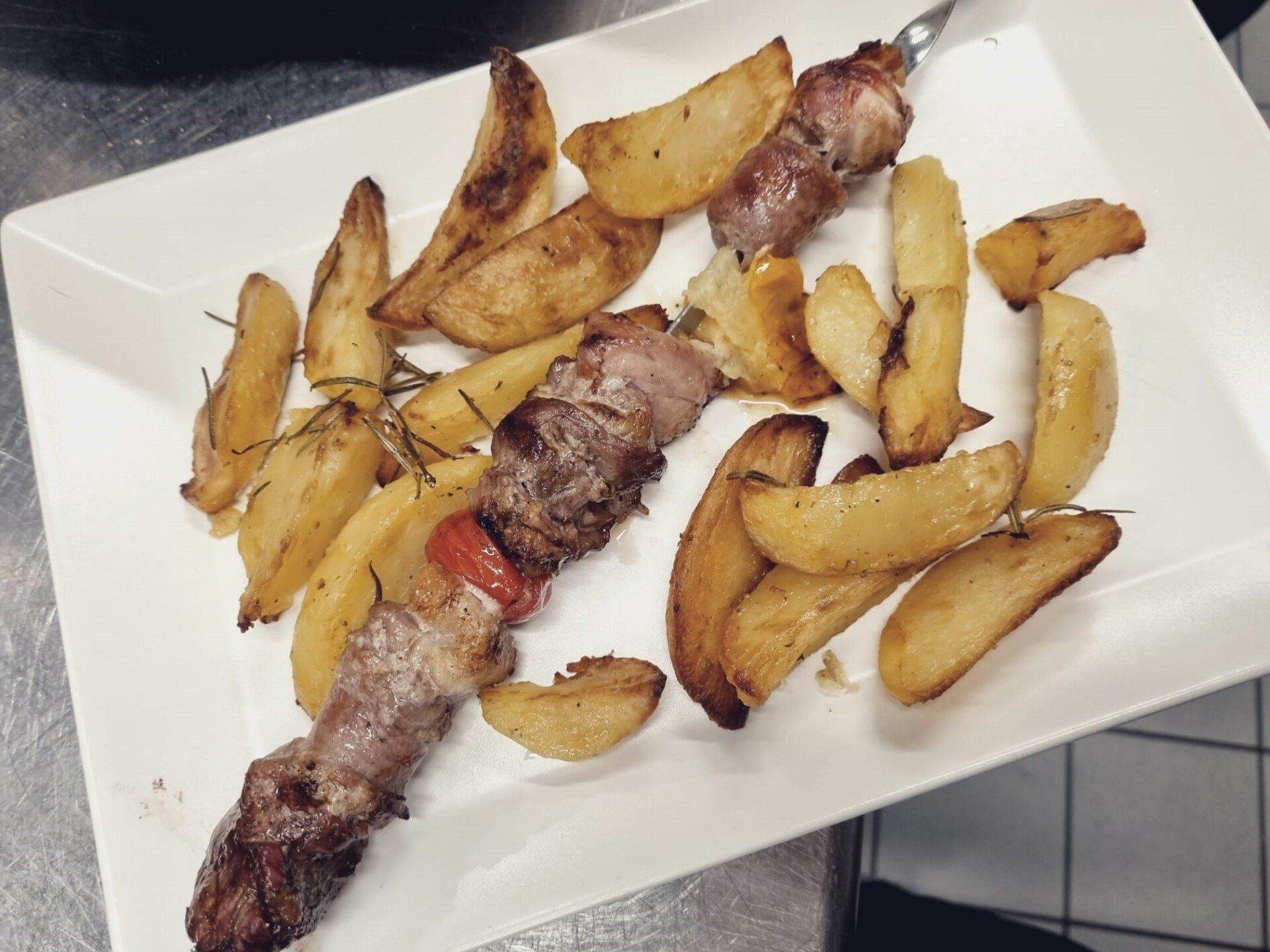 (salsiccia, pancetta, pollo lardellato, manzo, pomini)
